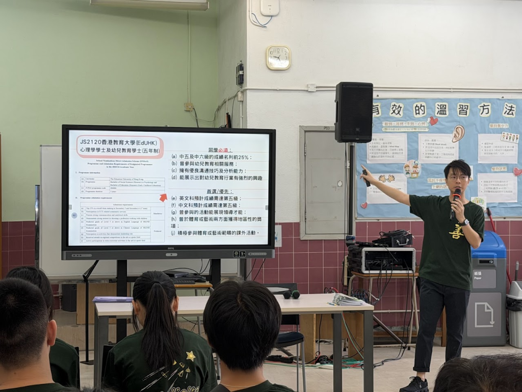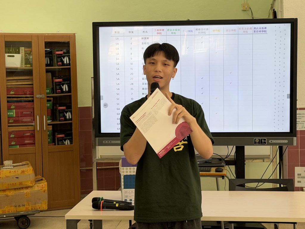 活動由葉偉恆老師主持揭開序幕,詳細介紹了活動內容及目的,並特別講解了JUPAS、學校推薦、校長推薦等升學計劃,讓同學了解除DSE成績外,還有多元途徑升讀大學,拓闊升學視野。